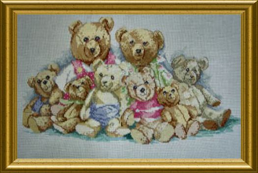 Dit berenschilderij heb ik geborduurd met DMC zijde,