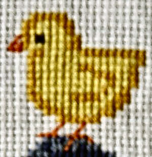 Een loper waar je als je lang naar kijkt de kuikentjes
