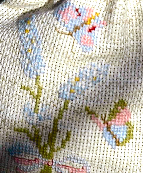 klaar, zodat ik er slecht bij kon met mijn borduurnaald.