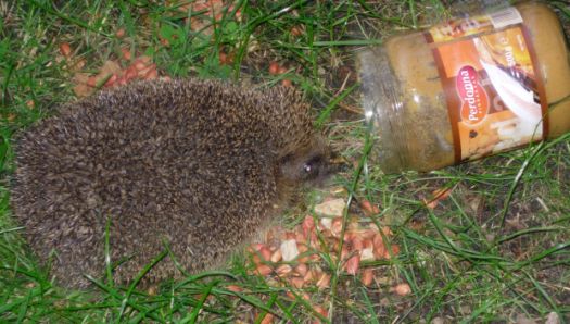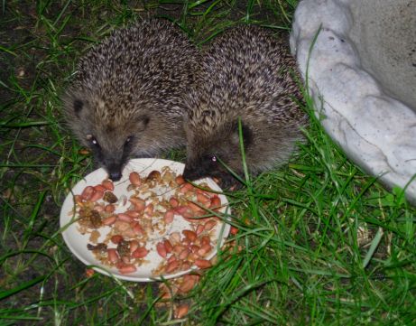 Vanavond kwamen er twee egeltjes snoepen van het egelvoer