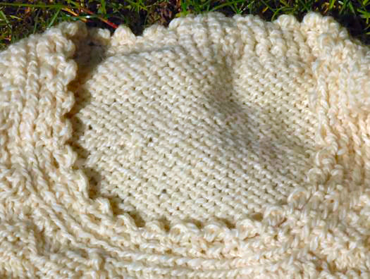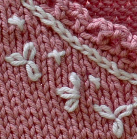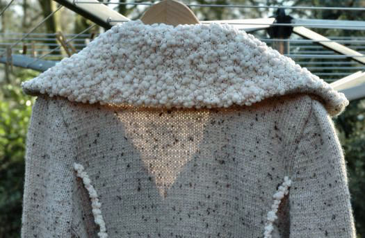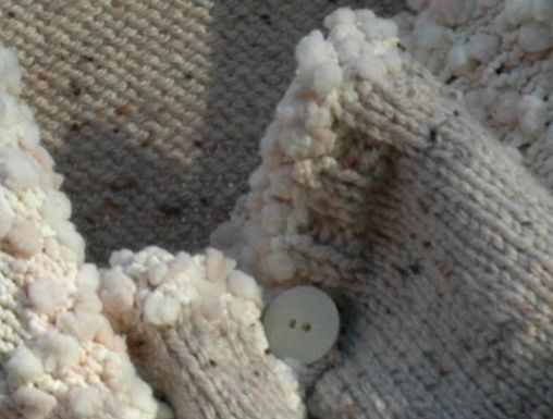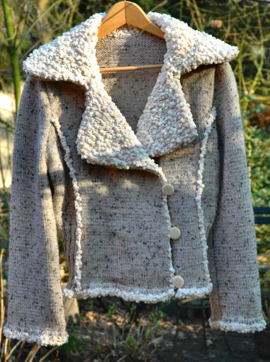 "bobbeltjeswol"gebreid. De siernaden heb ik er op gebreid,