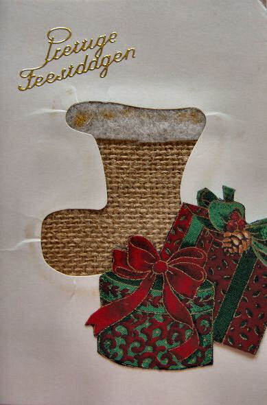 Bij deze kerstkaart was de kerstsok al uitgesneden,ik heb er
