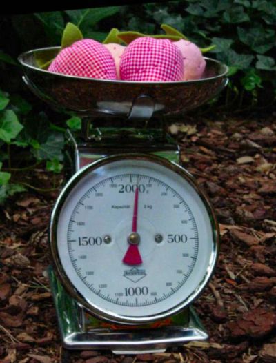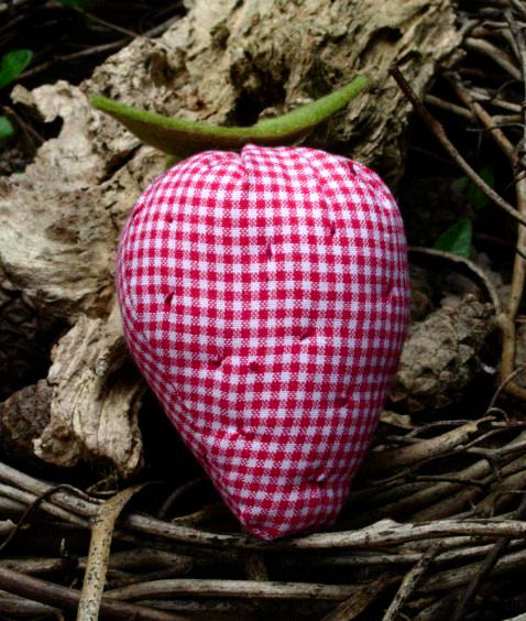 De aardbeien heb ik van stof gemaakt en gevuld met fiberfill,de