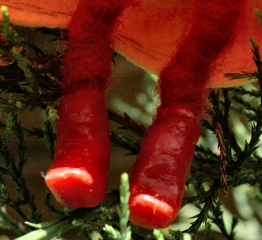 om haar beentjes gewikkeld en gekneed tot de vorm van een laarsje.