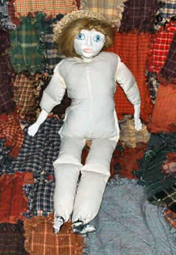 Een pop gemaakt door dochter en aangekleed door moeder