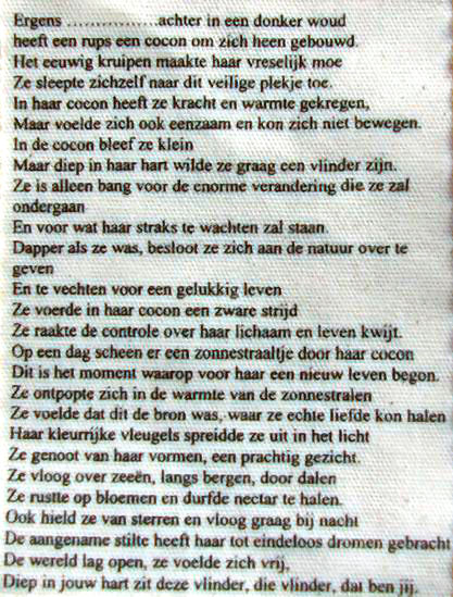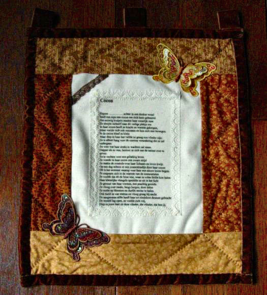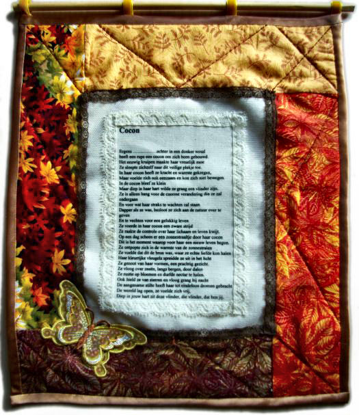 Het gedicht wat ik in het quiltje verwerkt heb heet Cocon , dit
