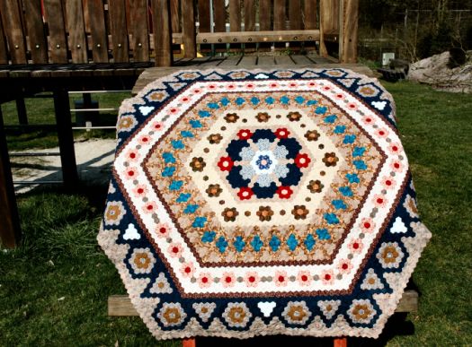 De zeskantjes top is klaar, nu nog "even" quilten.