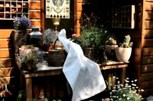Bij ons ligt het kleed in een leren stoeltje,het is een plezier om