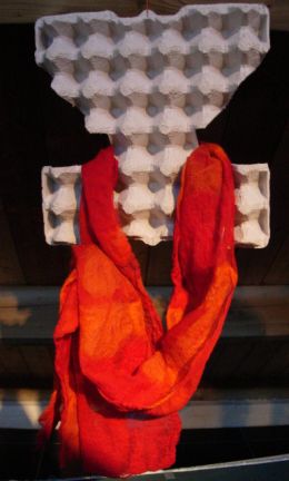 Dit heb ik gemaakt van een pakketje van “de Witte Engel”.De techniek is droogvilten.Dit pakketje heb ik gekregen van ons kleinkind Sofie.